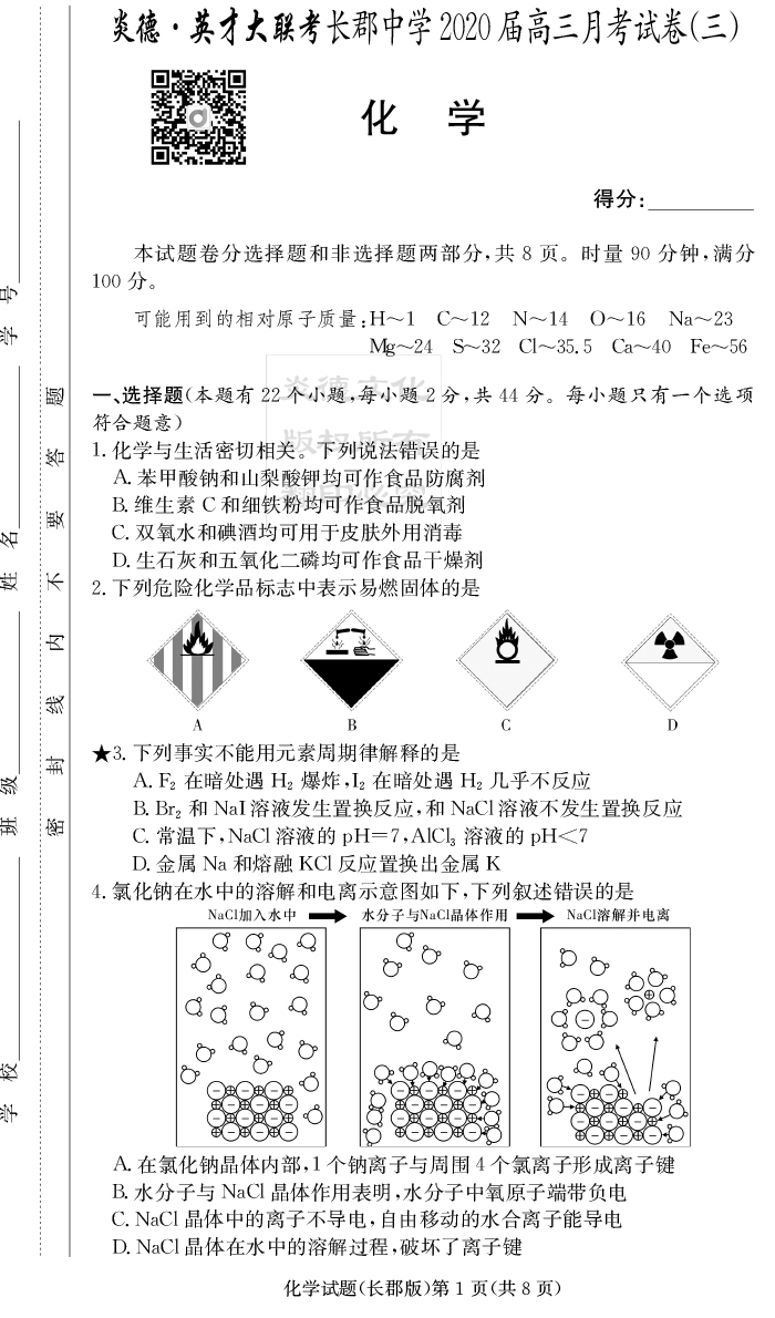 2026長郡中學新高考考前小題沖刺訓練·化學