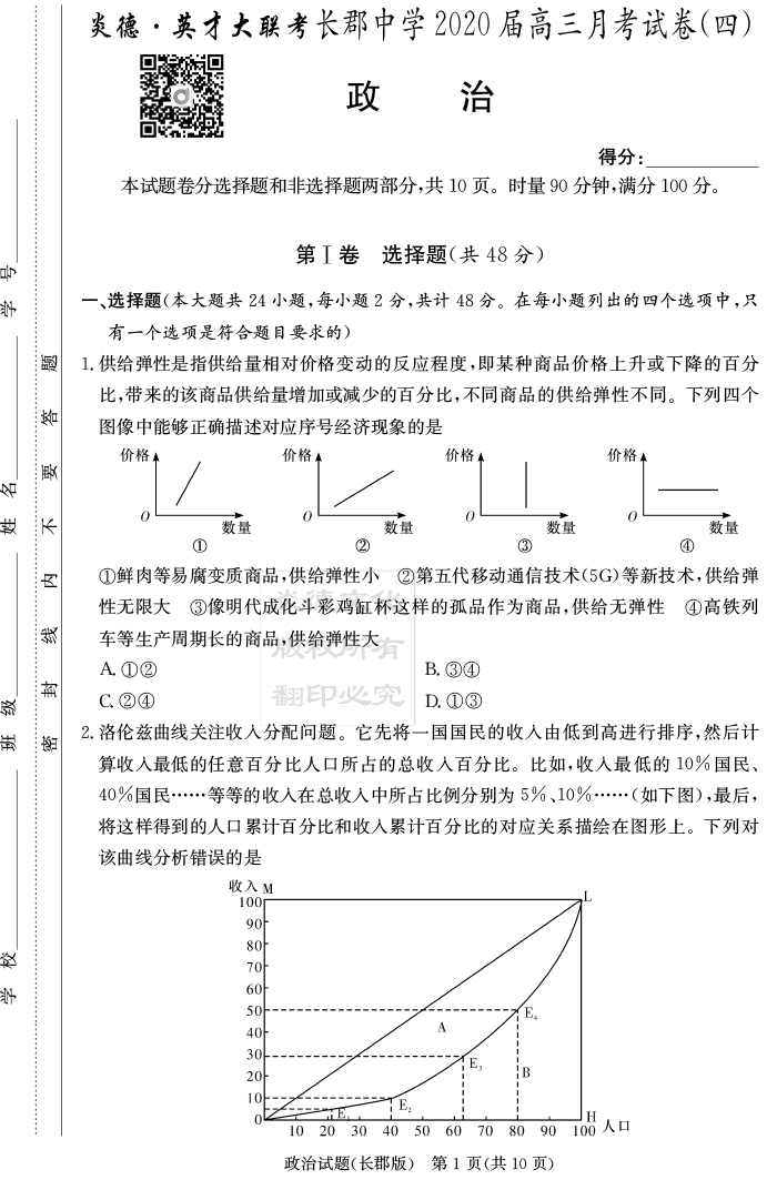 2026長郡中學新高考考前小題沖刺訓練·政治