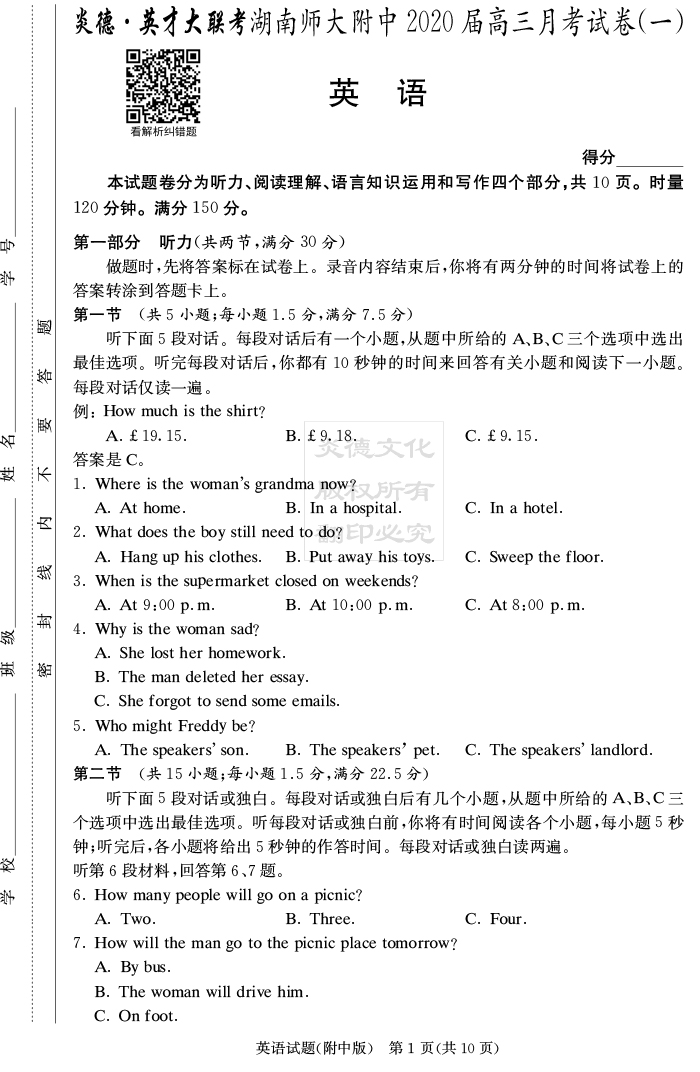 下一篇:【語文】炎德英才大聯考2020屆師大附中高三1次月考