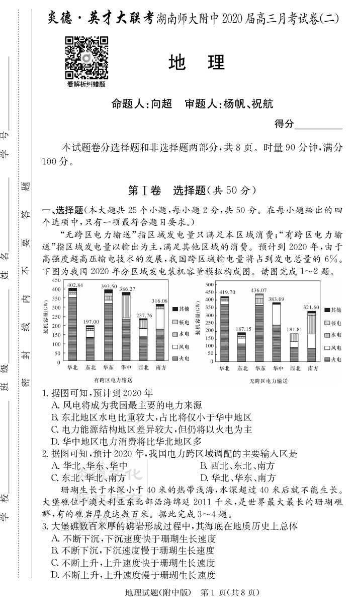 2026湖南師大附中新高考考前小題訓練·地理