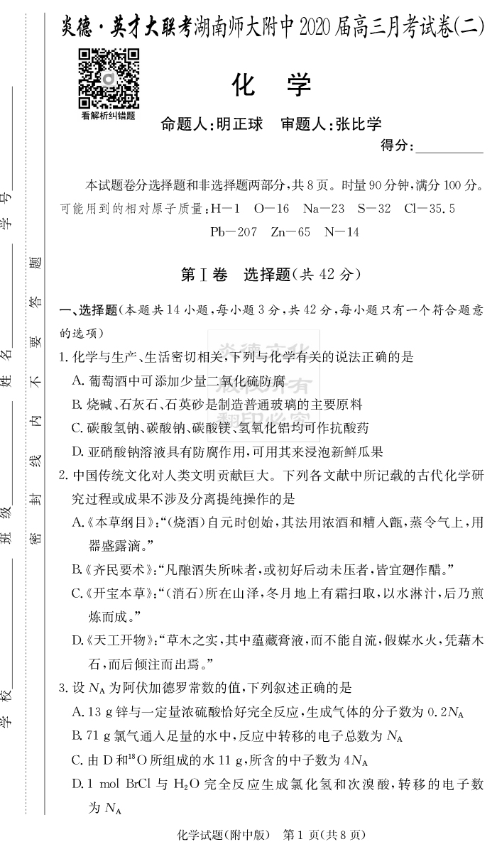 下一篇:【理數】炎德英才大聯考2020屆師大附中高三2次月考