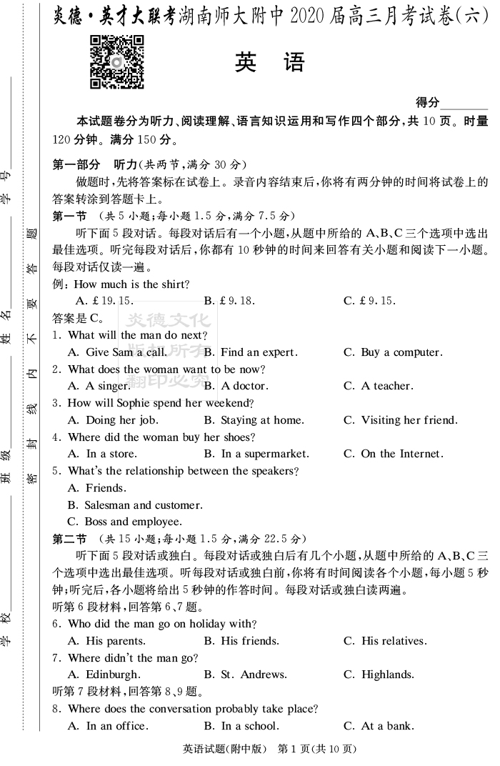 下一篇:【語文】炎德英才大聯(lián)考2020屆師大附中高三6次月考