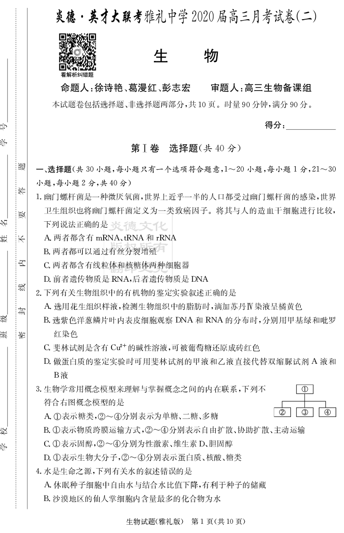 | 資源類別: | 名校月考 | |