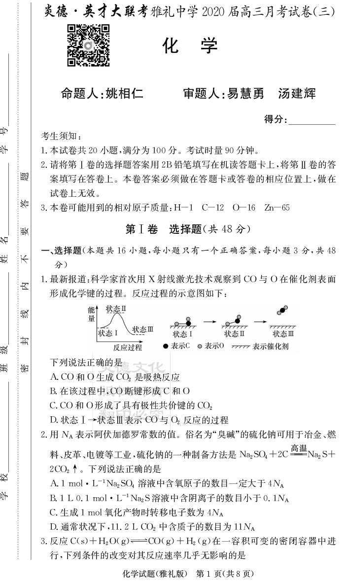 下一篇:【理數】炎德英才大聯考2020屆雅禮中學高三3次月考