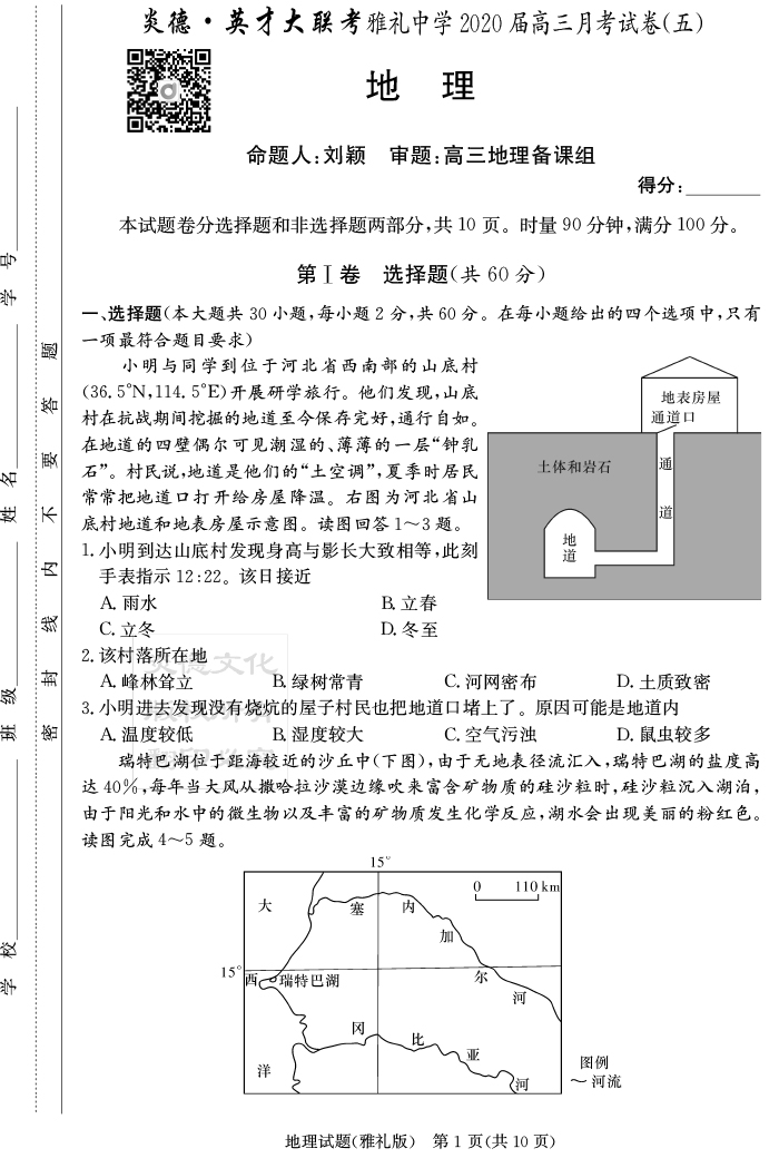 【地理】炎德英才大聯考2020屆雅禮中學高三5次月考
