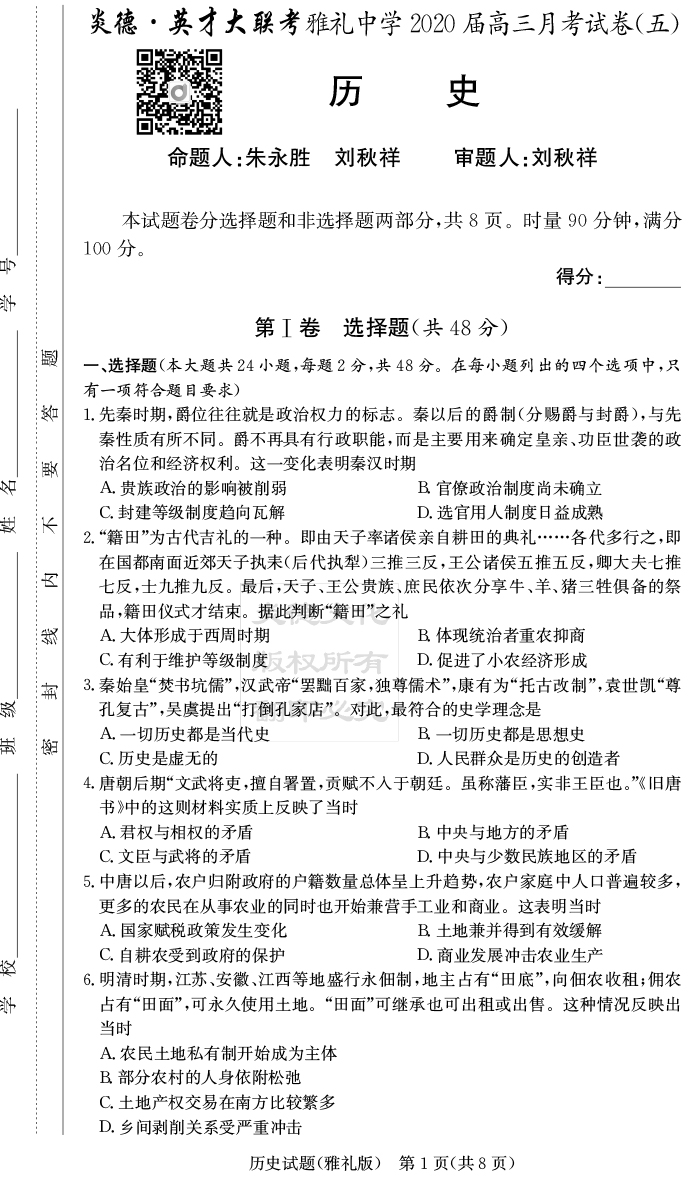 2026年長郡中學備考寶典(高考考前寶典)·歷史傾向