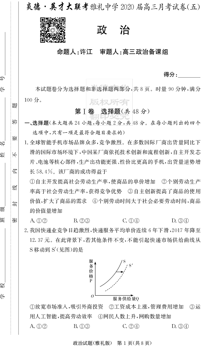 2026長郡中學新高考考前小題沖刺訓練·政治