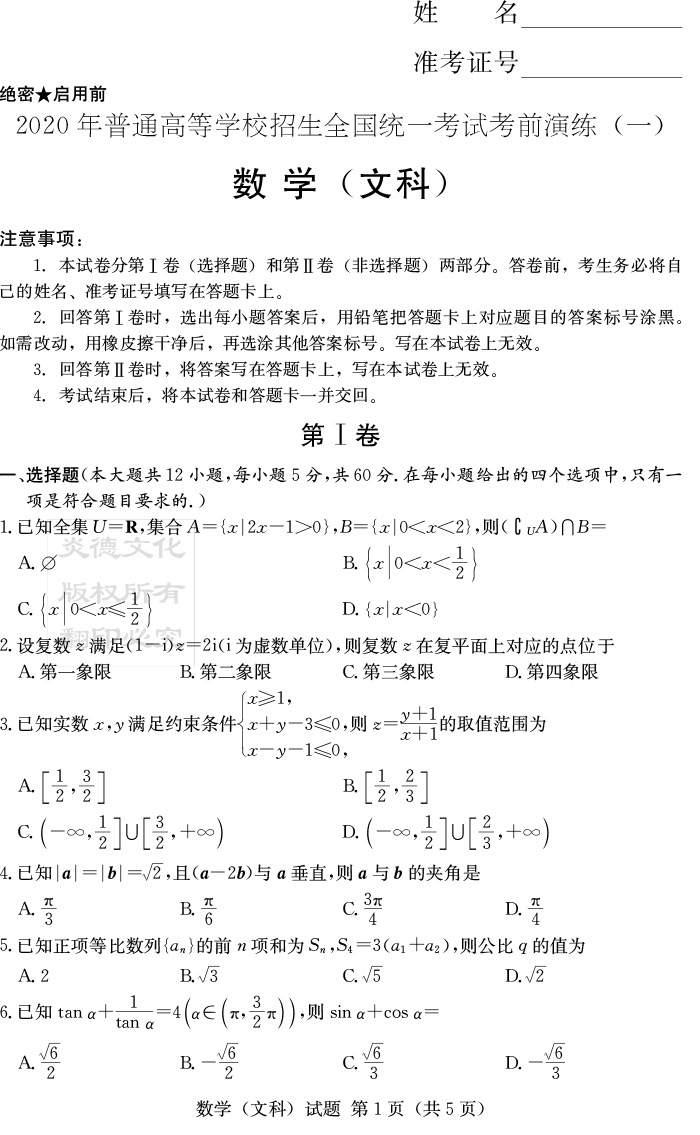 下一篇:【文綜】2020年普通高等學校招生全國統一考試考前演練(一)