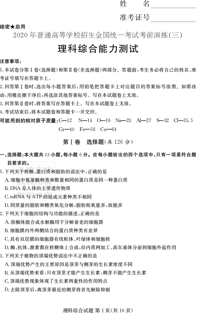 上一篇:【理數(shù)】2020年普通高等學校招生全國統(tǒng)一考試考前演練(三)