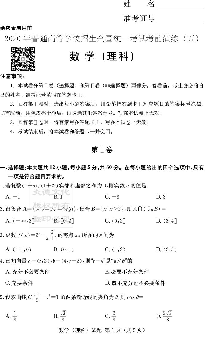 下一篇:【理綜】2020年普通高等學校招生全國統一考試考前演練(五)