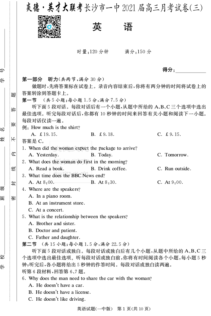| 資源類(lèi)別: | 名校月考 | |