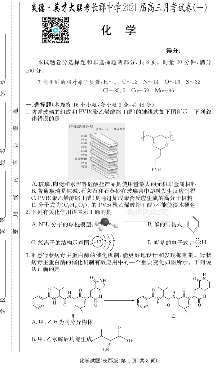 2026長郡中學新高考考前小題沖刺訓練·化學