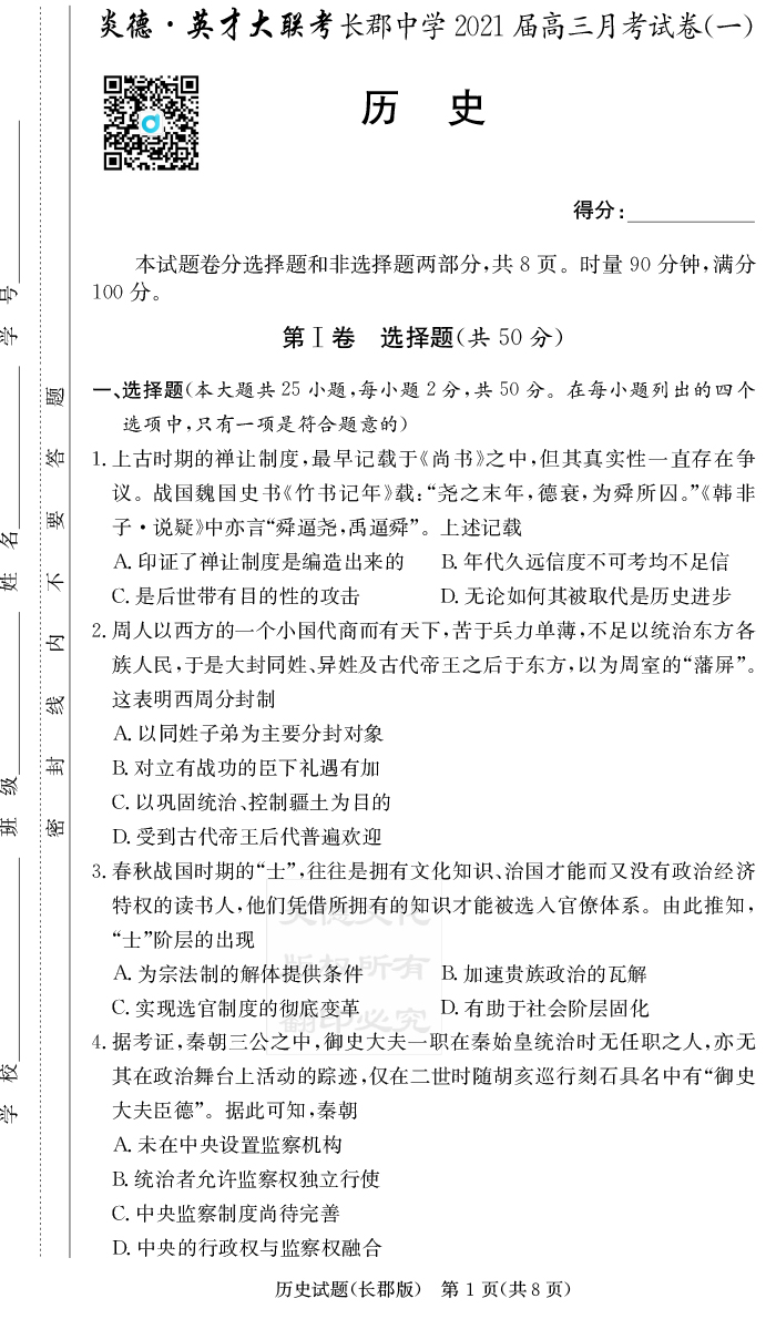 2026年長郡中學備考寶典(高考考前寶典)·歷史傾向