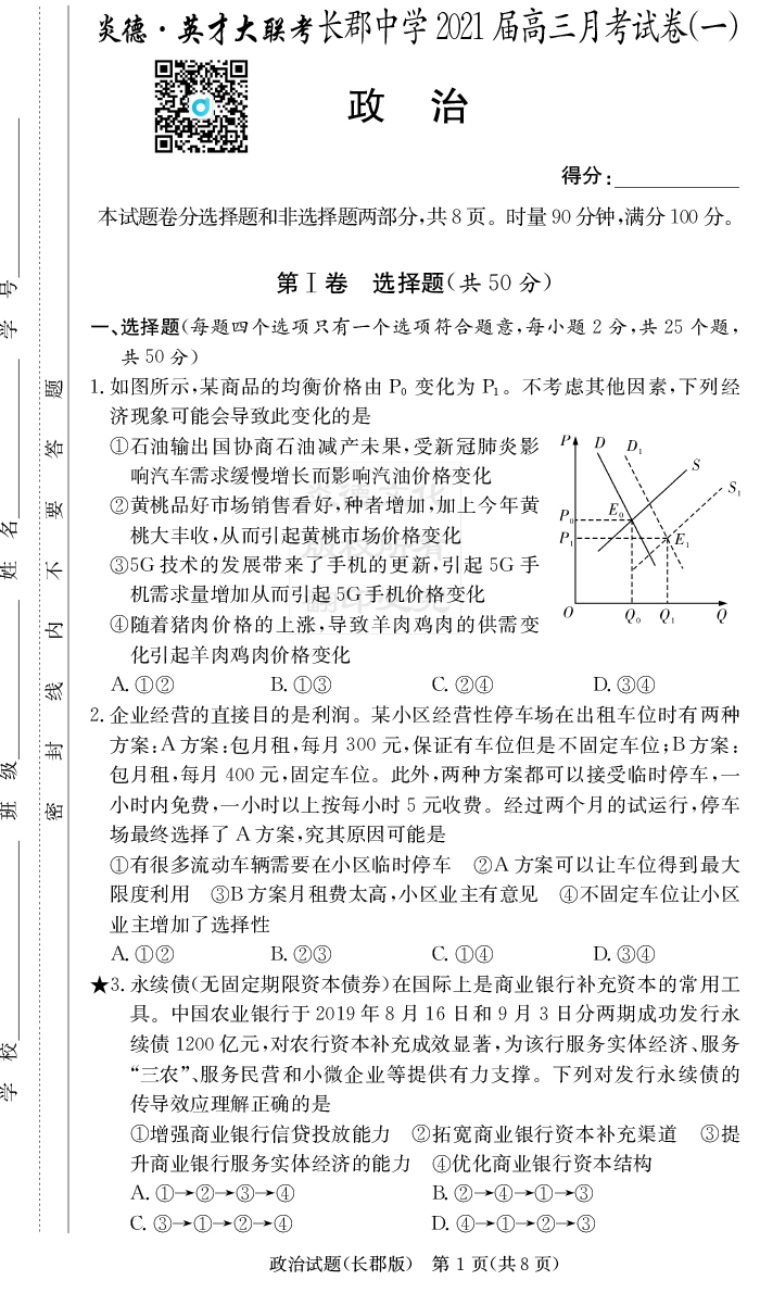 2026長郡中學新高考考前小題沖刺訓練·政治
