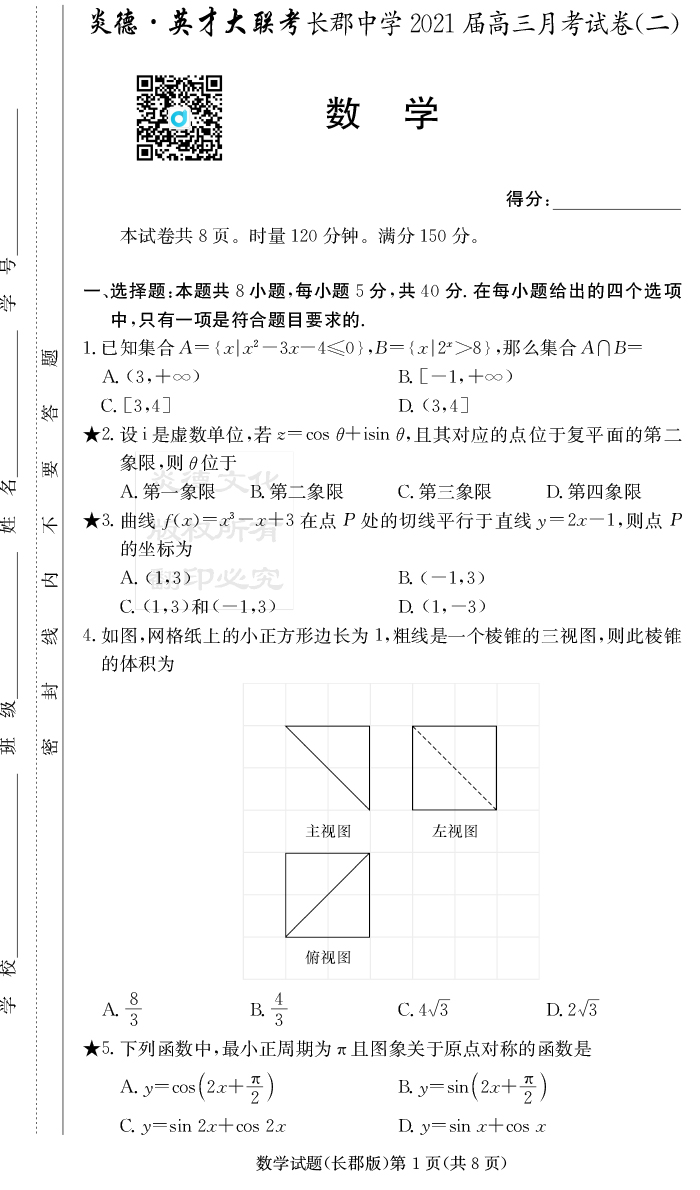 2026長郡中學新高考考前小題沖刺訓練·數學