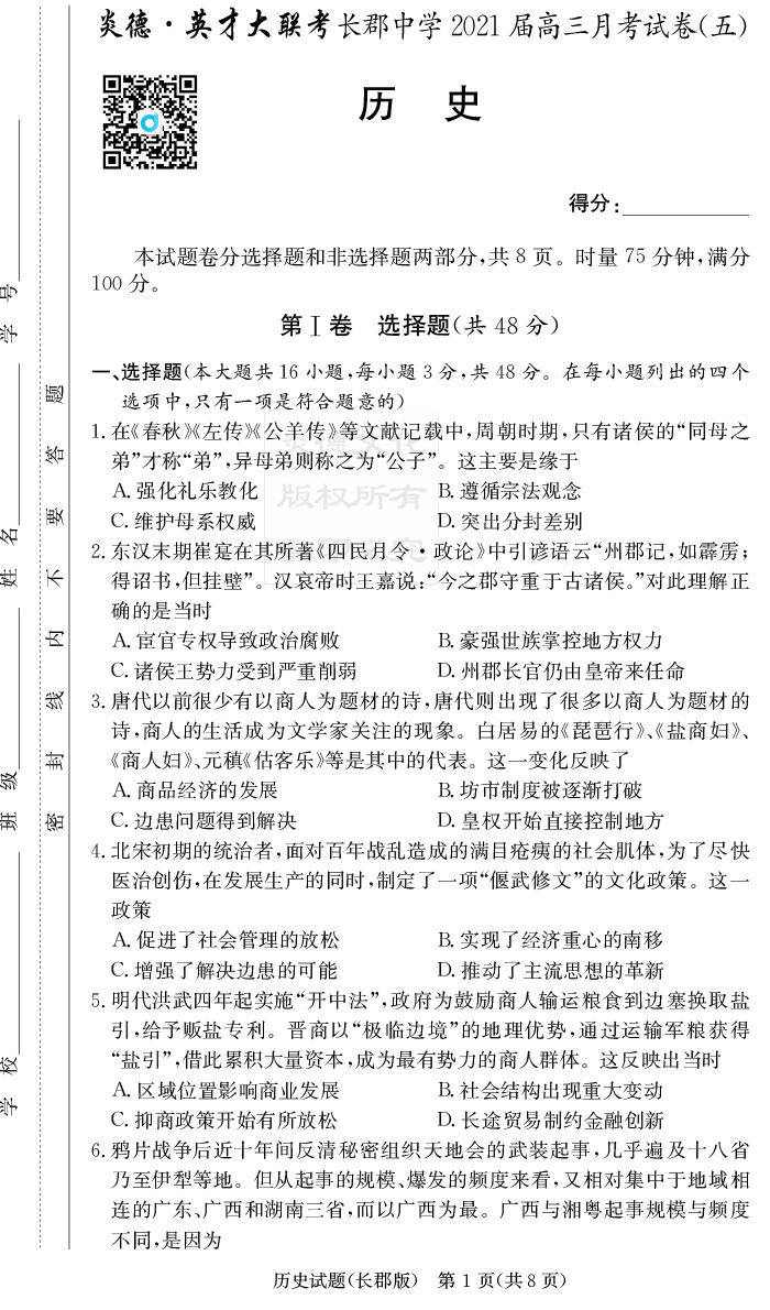 2026年長郡中學備考寶典(高考考前寶典)·歷史傾向