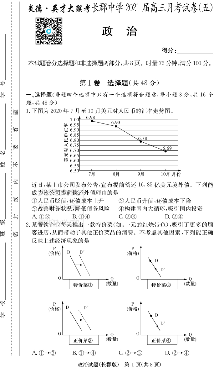 2026長郡中學新高考考前小題沖刺訓練·政治