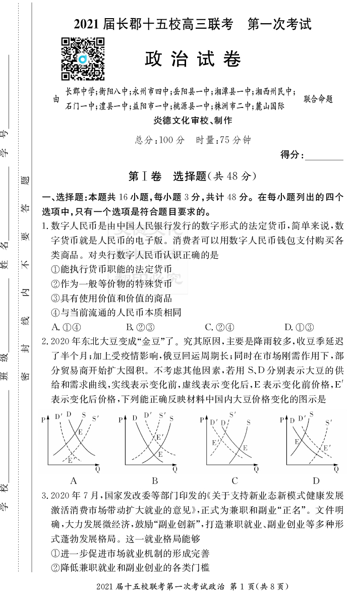 2026長郡中學新高考考前小題沖刺訓練·政治