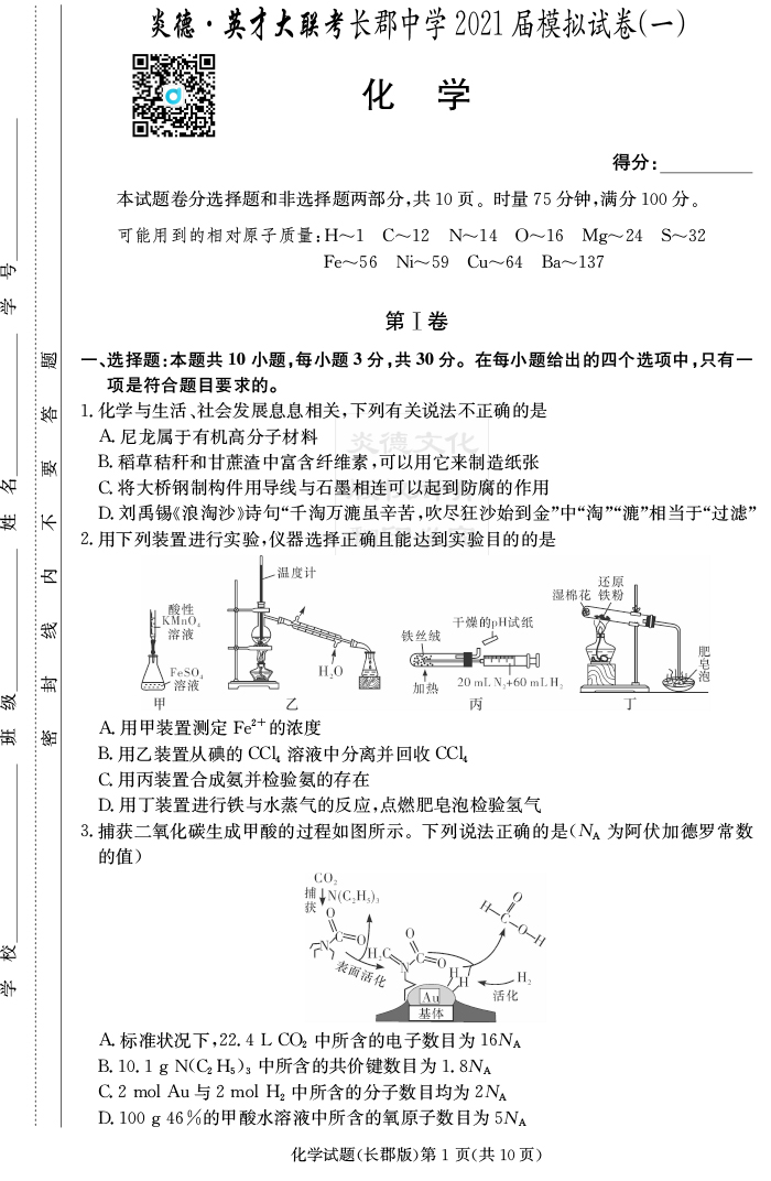 2026長郡中學新高考考前小題沖刺訓練·化學