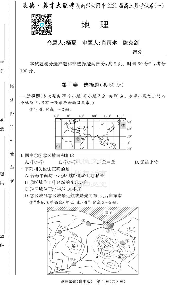 2026湖南師大附中新高考考前小題訓練·地理