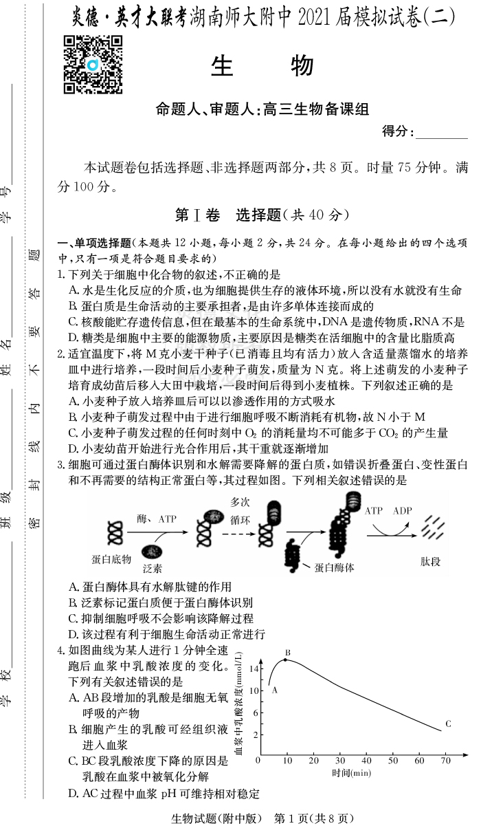 上一篇:【歷史】炎德英才大聯考2021屆湖南師大附中高三9次月考(模擬二)