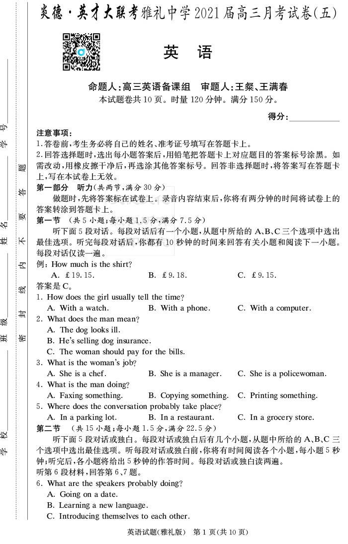 下一篇:【語文】炎德英才大聯考2021屆雅禮中學高三5次月考