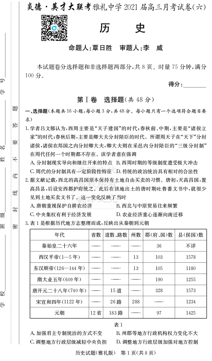 2026年長郡中學備考寶典(高考考前寶典)·歷史傾向