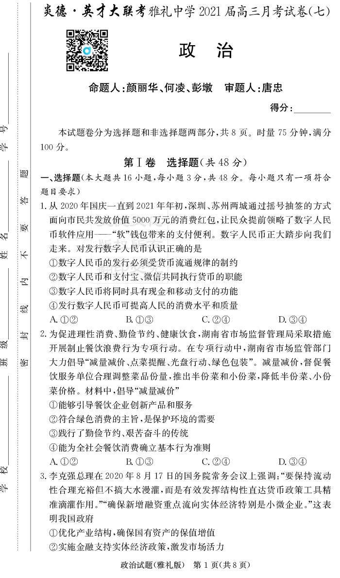 | 資源類別: | 名校月考 | |
