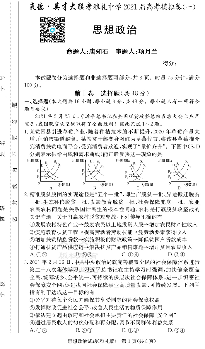 2026長郡中學新高考考前小題沖刺訓練·政治