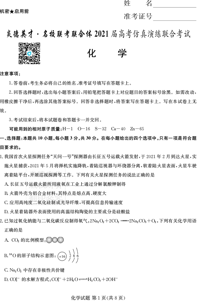 下一篇:【歷史】2021年普通高等學校招生全國統一考試考前演練(五)