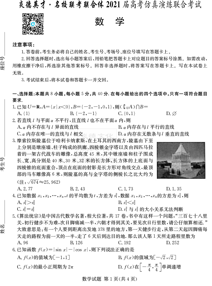 下一篇:【物理】2021年普通高等學校招生全國統(tǒng)一考試考前演練(五)