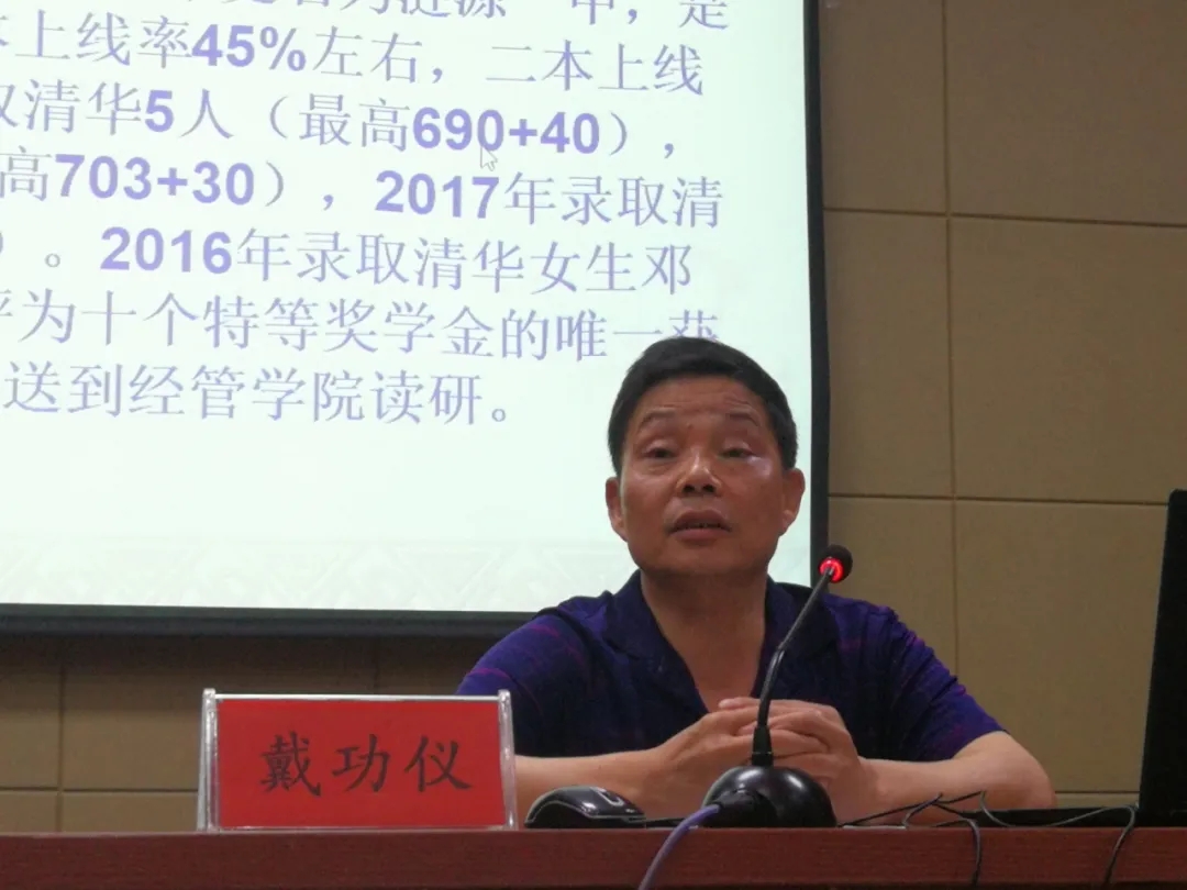 戴功儀校長分別從優等生培養的秘訣、學生潛力的激發及青年教師培養等方面為在座的老師傳經送寶。在優等生培養方面,他提出:要穩、準、狠;在學生潛力的激發方面,他提出:知識與精神一樣重要,勇氣比能力更重要,教師要培養學生的斗志;在教師培訓方面,他提出:要提高教師的業務水平,做聚焦型、研究型和務實型教師,要充分發揮團隊作用。