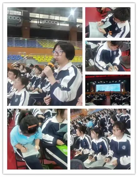 繡口錦心的馬老師,親和有力,舒緩儒雅。講座既有的理論指導,又有真誠的經驗介紹。從大處看,思路清晰,體系圓整;自細節觀,字字金玉、句句箴言。美文頻頻援引,朗讀之聲瑯瑯;師生互動環節,氣氛活躍融洽。馬老師給主動展示的學生送出獎品小冊子,更是引來嘖嘖羨慕。全體師生聽得津津有味,在筆記本上認真詳細做筆記。因為,我們真真切切感到,馬老師“輕描淡寫”中分享的每一種提分招數、每一種素材積累途徑,我們經過長久踐行甚至走過彎路方能認知,在此刻真正感到“于我心有戚戚焉”。對于“干貨”,我們的態度是,先占有,再用時間的清水慢慢泡開,變成豐美盈潤的寫作原材,烹飪,汲取,滋養我們的文筆。