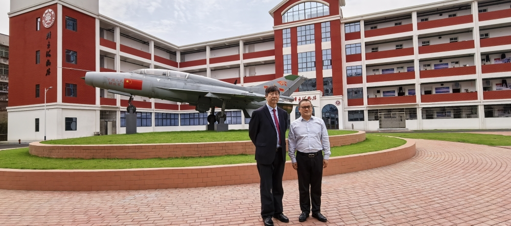 講座結(jié)束后,湘潭縣第一中學(xué)黨委書記齊學(xué)軍、黨委副書記、校長唐樂軍、肖榮、郭良玉等熱情接待了姜春良將軍一行,陪同大家參觀了校園和海航樓。湘潭縣第一中學(xué)創(chuàng)辦于1946年,校園占地16.23萬平方米,建筑面積12.69萬平方米。學(xué)校秉承“剛勁、務(wù)實(shí)、敢為人先”的湖湘精神,銳意進(jìn)取,積淀了深厚的辦學(xué)底蘊(yùn);擁有湘潭大學(xué)、湖南科技大學(xué)、湖南工程學(xué)院等全國重點(diǎn)高校豐富的教學(xué)科研資源。學(xué)校取得了豐碩的辦學(xué)成果:學(xué)校是湖南省示范性普通高級(jí)中學(xué)、湖南省海軍青少年航空學(xué)校、全國文明校園、全國五四紅旗團(tuán)委、全國青少年校園足球特色學(xué)校、全國青少年校園籃球特色學(xué)校、全國國防教育特色學(xué)校、中國百強(qiáng)中學(xué)、湖南省首屆魅力校園,也是全省同時(shí)榮膺清華、北大直薦學(xué)生資質(zhì)的六所高級(jí)中學(xué)之一,二十多年來持續(xù)領(lǐng)跑湘潭教育。