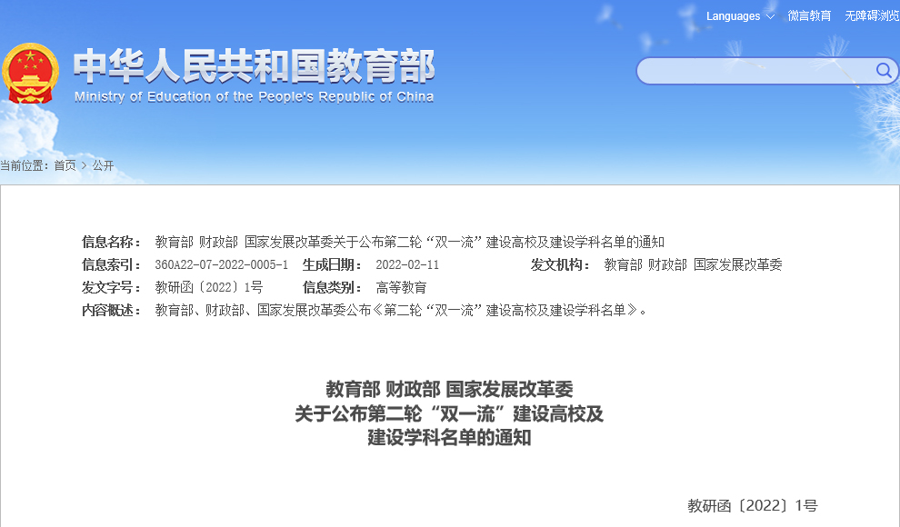 根據首輪監測數據和成效評價,三部委依據黨中央、國務院確定的“十四五”期間國家戰略急需領域,按照“總體穩定,優化調整”的原則,經過“雙一流”建設專家委員會研究,以需求為導向、以學科為基礎、以比選為手段,確定了新一輪建設高校及學科范圍。公布的名單共有建設高校147所。建設學科中數學、物理、化學、生物學等基礎學科布局59個、工程類學科180個、哲學社會科學學科92個。北京大學、清華大學自主建設的學科自行公布。為增強建設動力,完善約束機制,對首輪建設成效并未完全達到預期、相比同類學科在整體發展水平、可持續發展能力和成長提升程度方面相對偏后的部分學科給予警示,相關學科應加強整改,2023年接受再評價,屆時未通過的,將調出建設范圍。