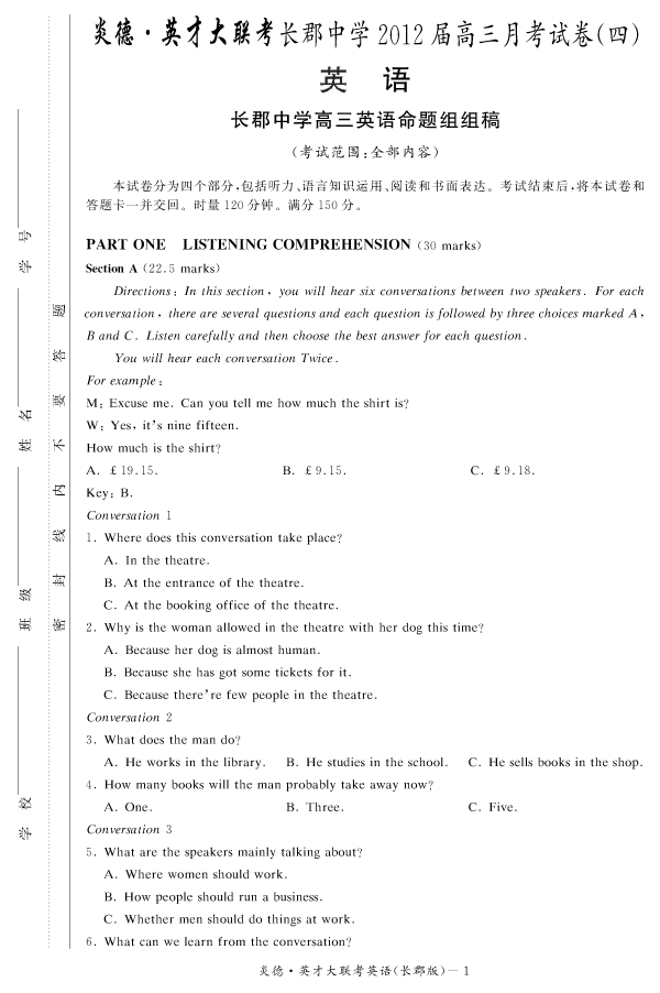 | 資源類別: | 名校月考 | |